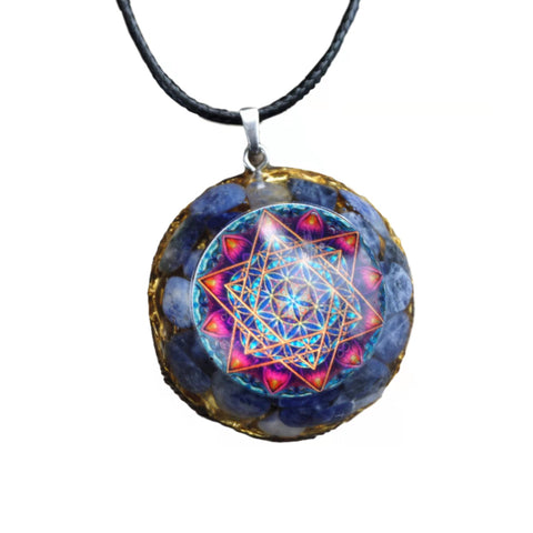 Flower Of Life Orgonite Pendant ~Sodalite Stone EMF Protection Reiki Meditation Tool Orgone Necklace Jewelry