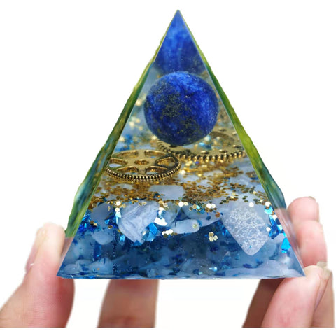 Lapis Lazuli Crystal Sphere Orgonite Pyramid with Blue Chalcedony Reiki Energy Orgone