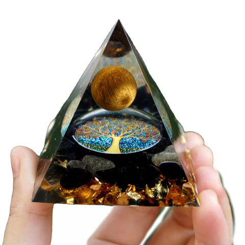 Tiger Eye Sphere Orgonite Pyramid with Obsidian Crystal Stone Energy Healing Orgone