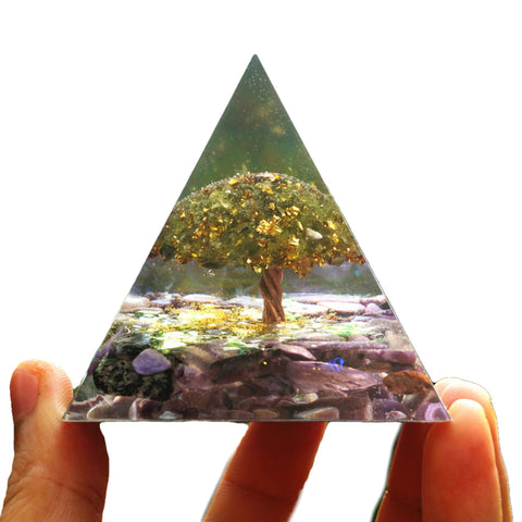 Tree of Life Orgone Pyramid Peridot with Charoite Crystal Stones EMF Healing Orgonite Pyramide