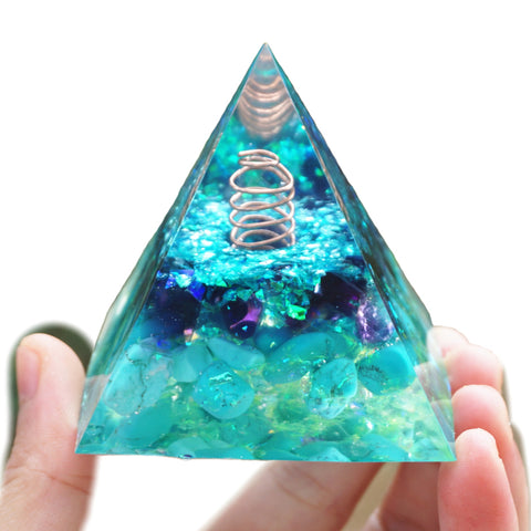 White Quartz Pillar Orgonite Pyramid with Amethyst Turquoise Crystal Healing Reiki Energy Orgone